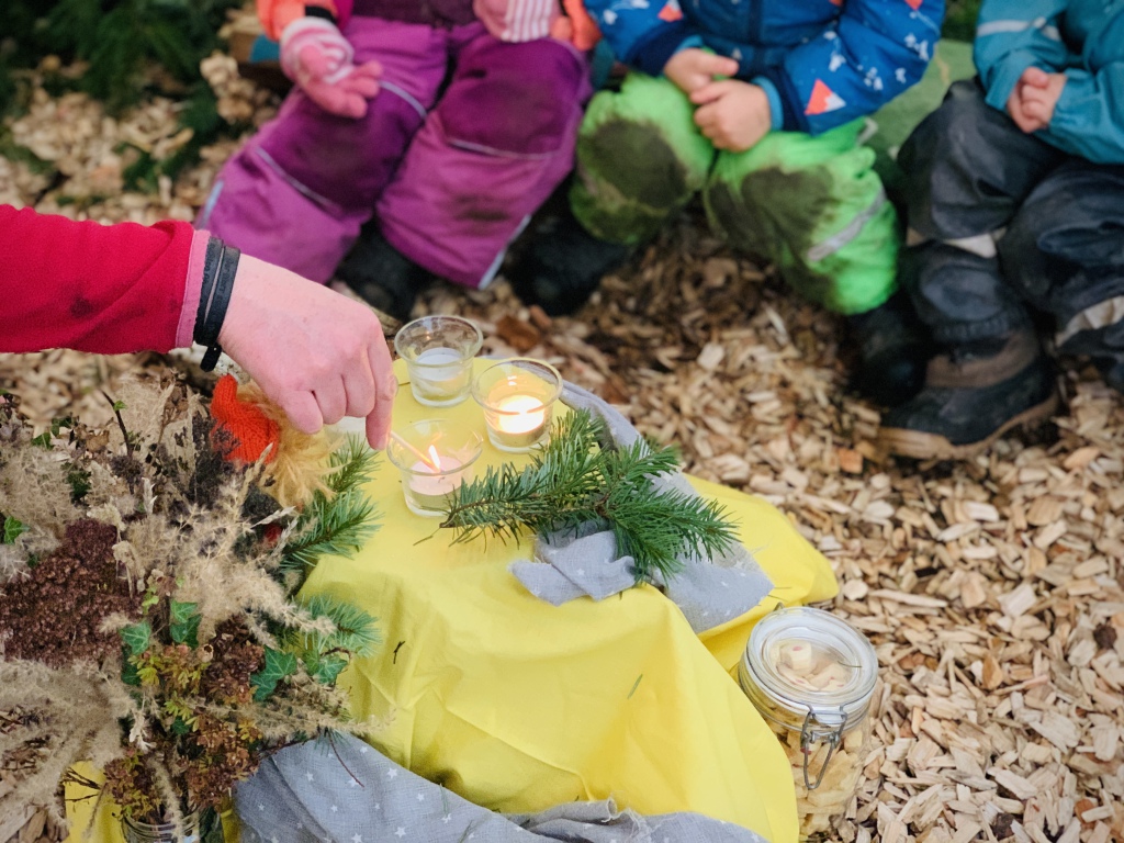 Unsere vier pädagogischen Fachkräfte (eine Sozialpädagogin/Naturpädagogin, drei Erzieherinnen) betreuen bis zu 20 Kinder im Alter von 2 3/4 bis Schuleintritt und freuen sich auf Ihre Kinder!